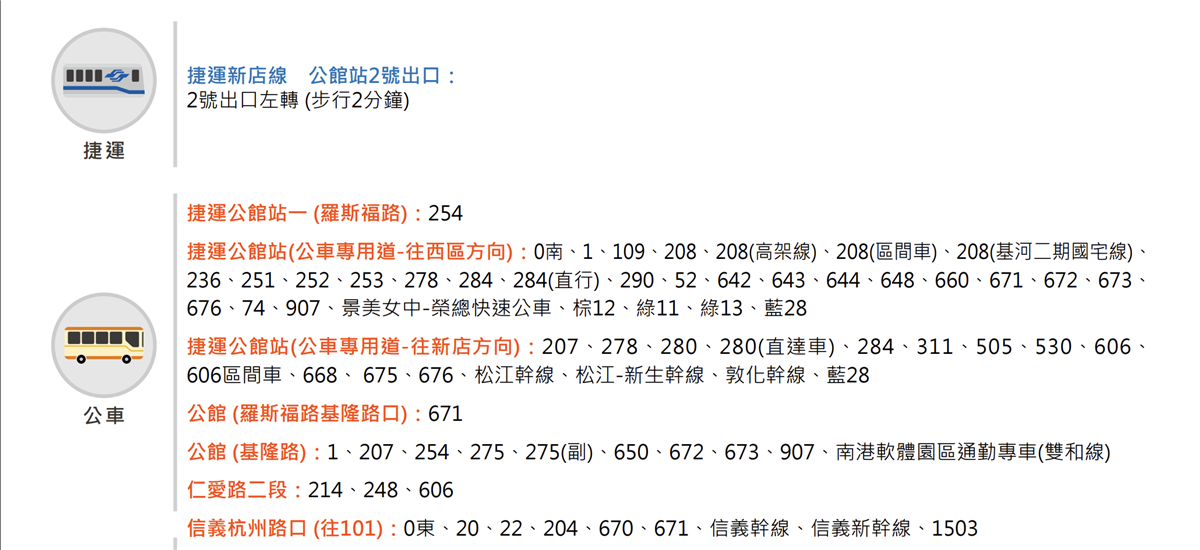 捷運新店線【公館站】2號出口:2號出口左轉 (步行2分鐘)