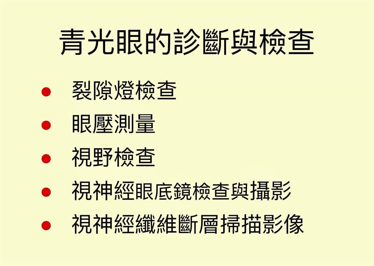 眼科門診有一個機器叫「裂隙燈」,由眼科醫師做基本的初步檢查,能夠看得到隅角的寬窄、白內障的程度、有沒有其它發炎等症狀。