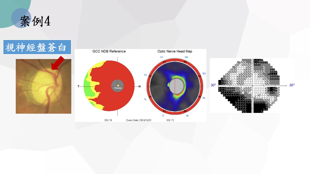 《案例4》 右眼眼底照相顯示視神經盤蒼白