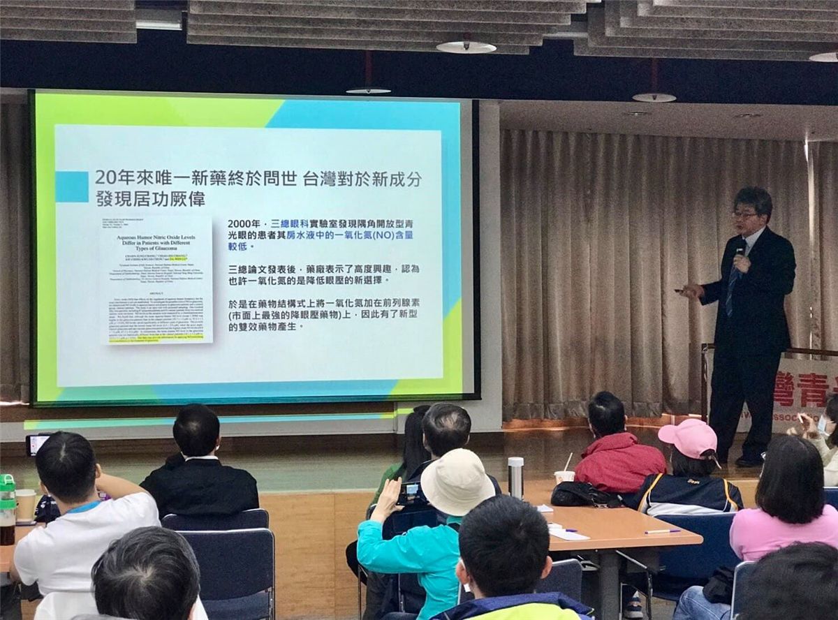 今天的青光眼講座,首先要頒發感謝狀獎牌,向協會發行「青光眼衛教手冊」提供首刷贊助之中華民國愛盲協會、双眼明診所、天廚國際致謝,並感謝何一滔醫師親臨會場。