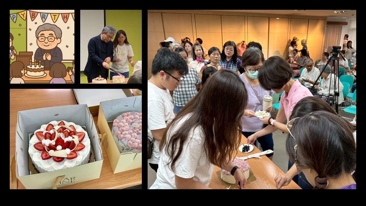 工作人員端出"一葷一素"兩個蛋糕,慶祝協會大家長呂大文醫師生日快樂。