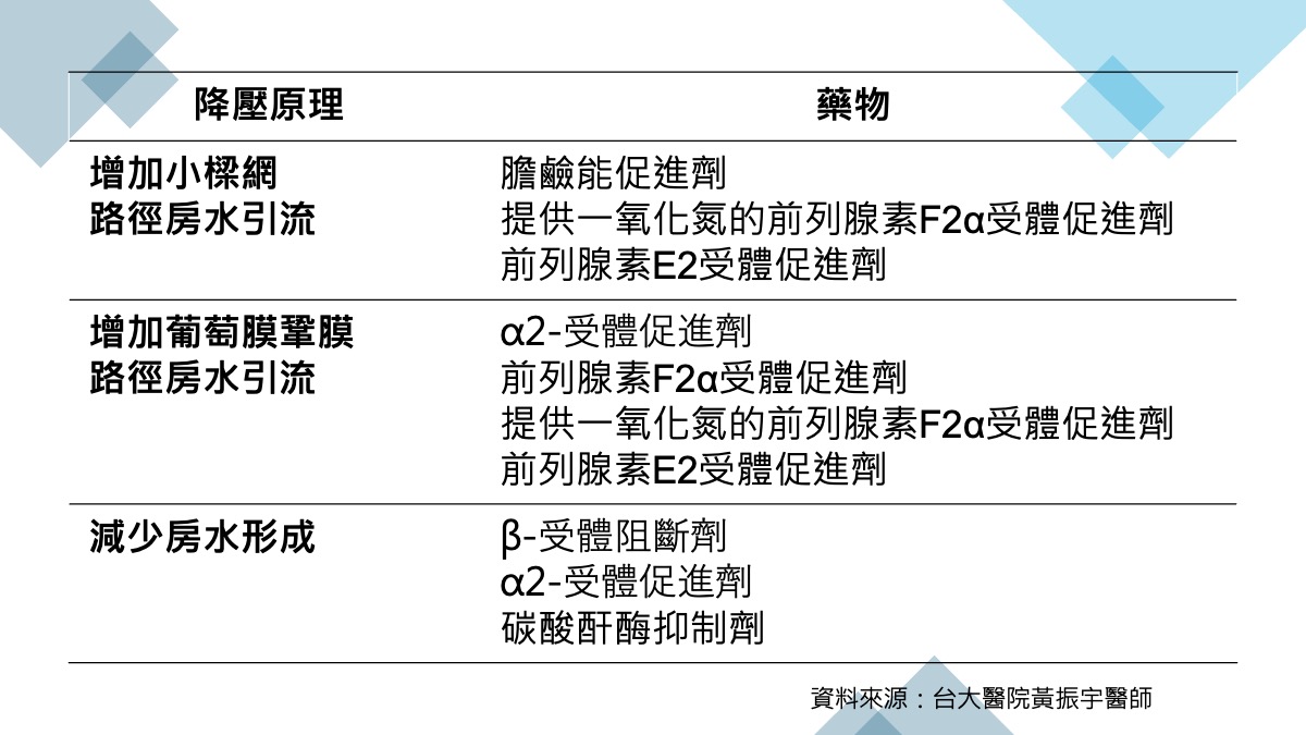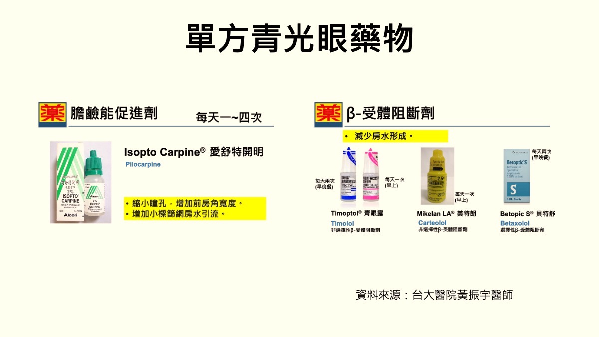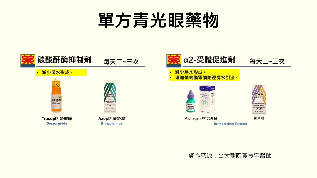 所有青光眼患者中,藥物治療仍居主流。有效地降低眼壓,是目前唯一證實可以抑制青光眼惡化的方法。