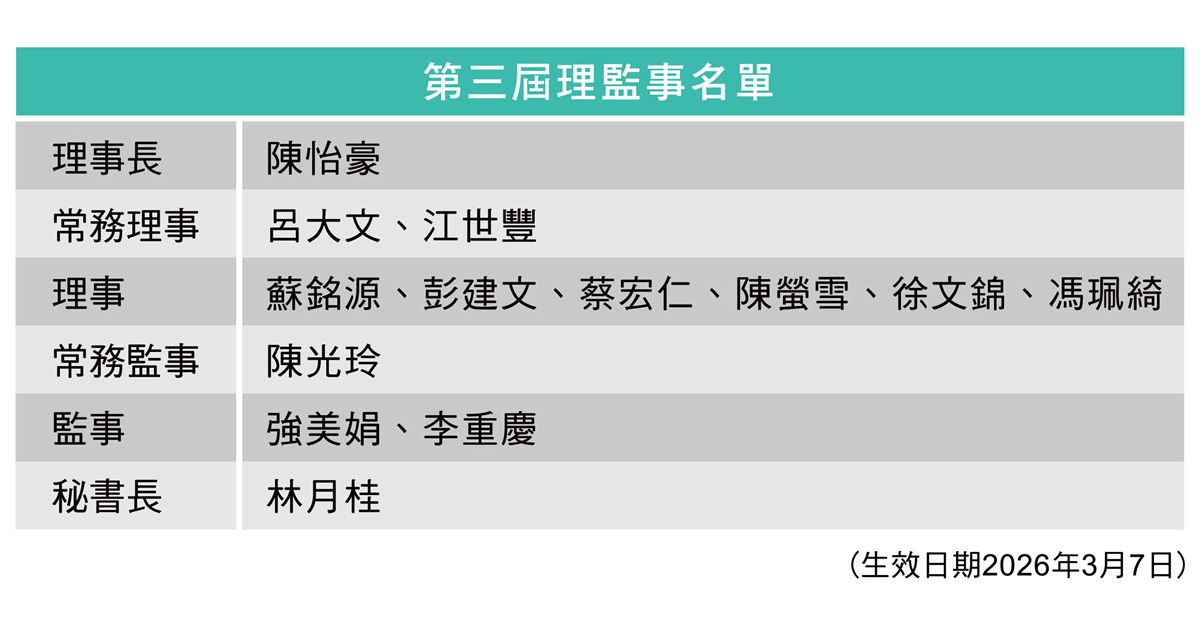 * 3月舉辦會員大會及第三屆理監事改選,由陳怡豪醫師榮任理事長